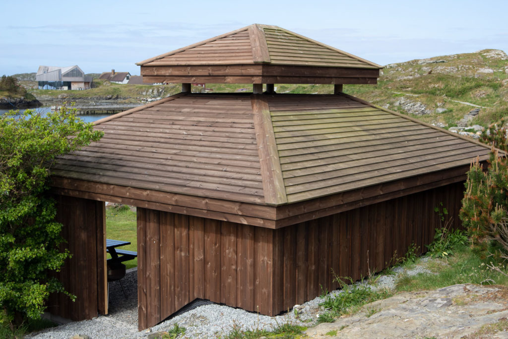 Bygging og ferdigstilling av gapahuk på Kvitsøy.